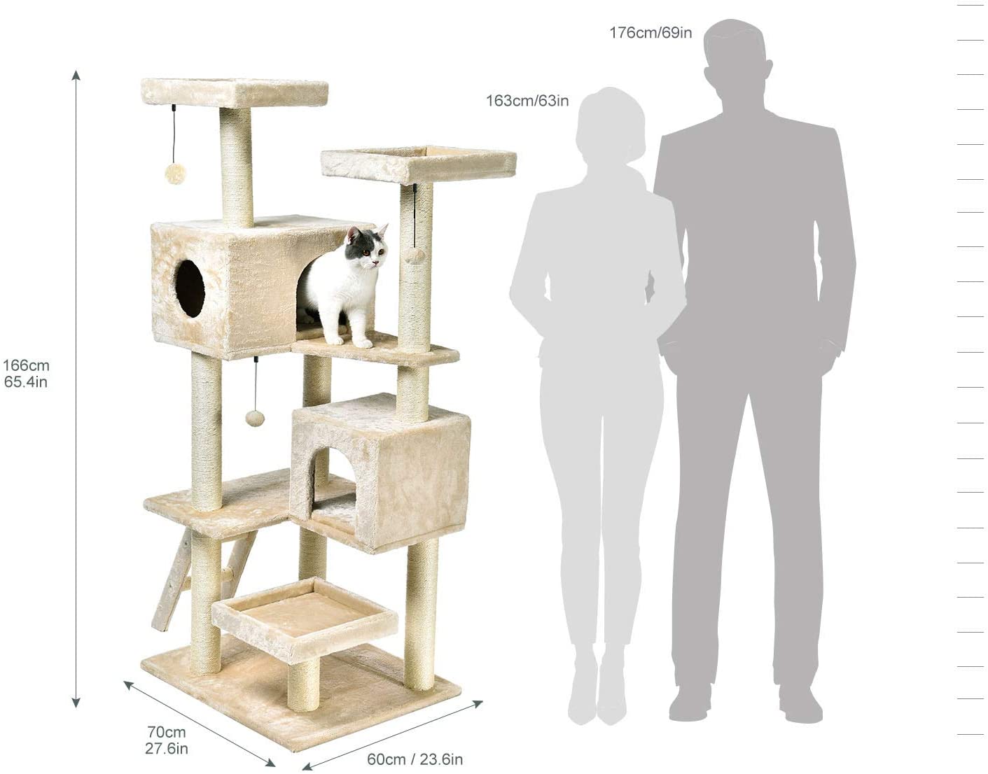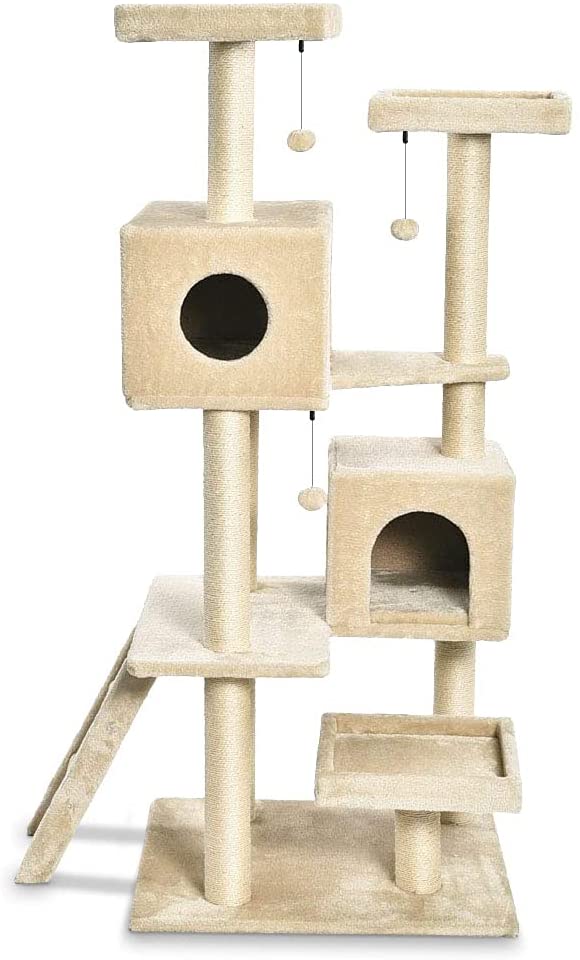 Amazon Basics Extra Large Cat Tree Tower With Dual Condo Cave - 28 x 65 x 24 Inches, Beige