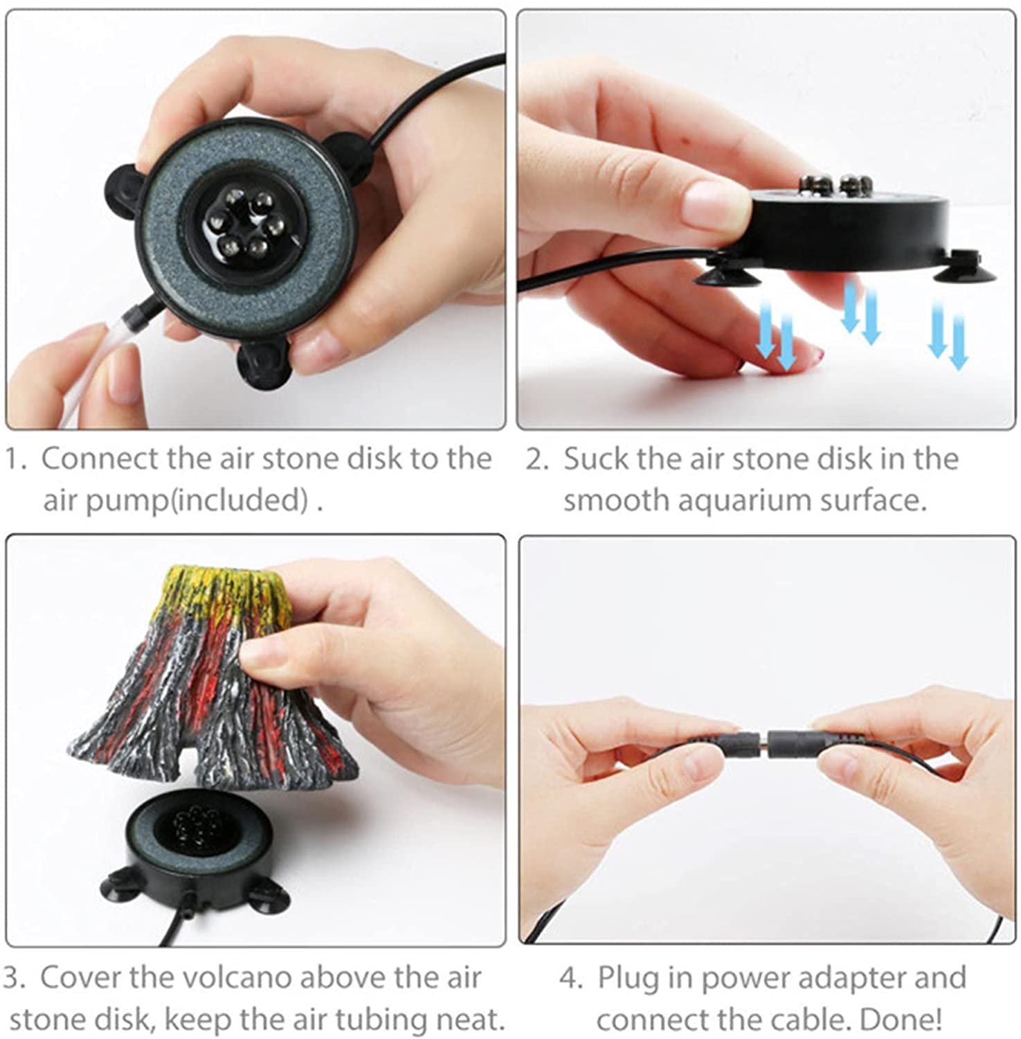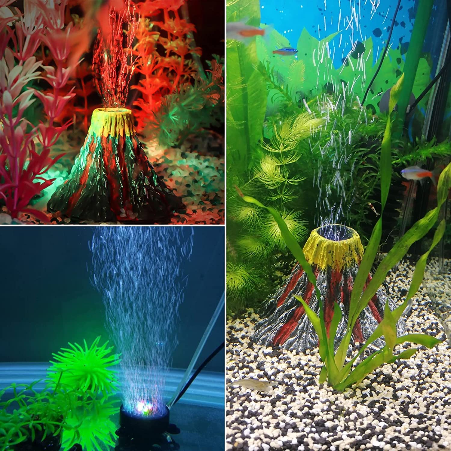 Aquarium Air Bubble Light Aquarium Stone Disk with Air Pump Volcano Ornament LED Air Stone Light with 6 LEDs Aquarium and Fish Tank Decoration Kit