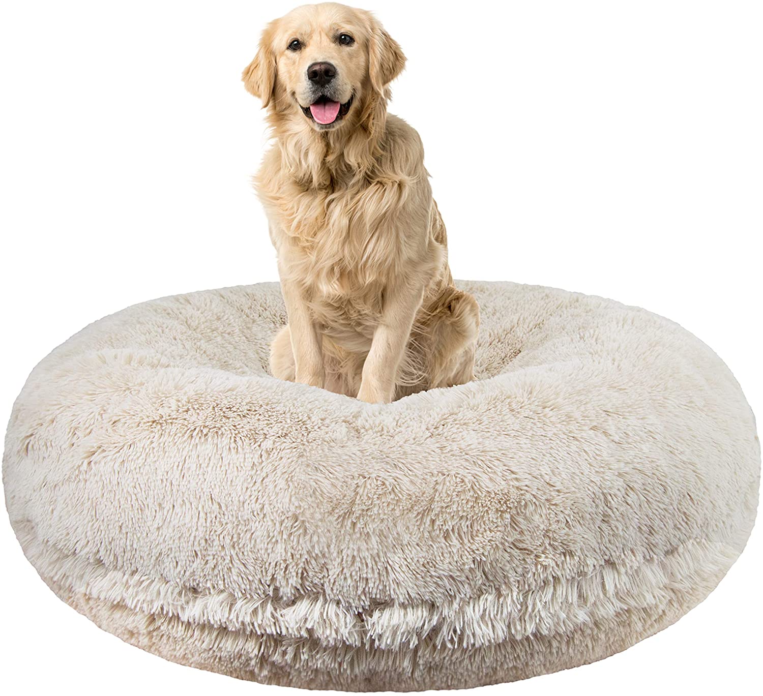 Bessie and Barnie Signature Blondie Luxury Shag Extra Plush Faux Fur Bagel Pet / Dog Bed (Multiple Sizes), XS - 24"
