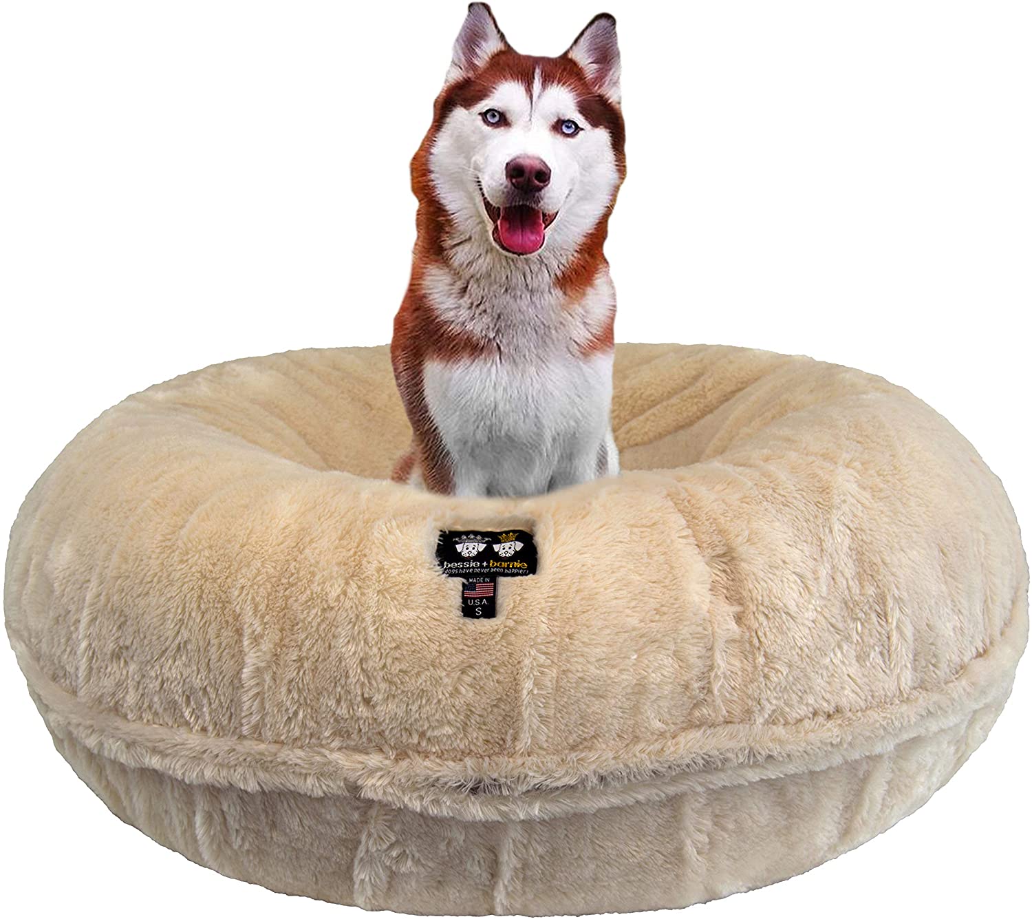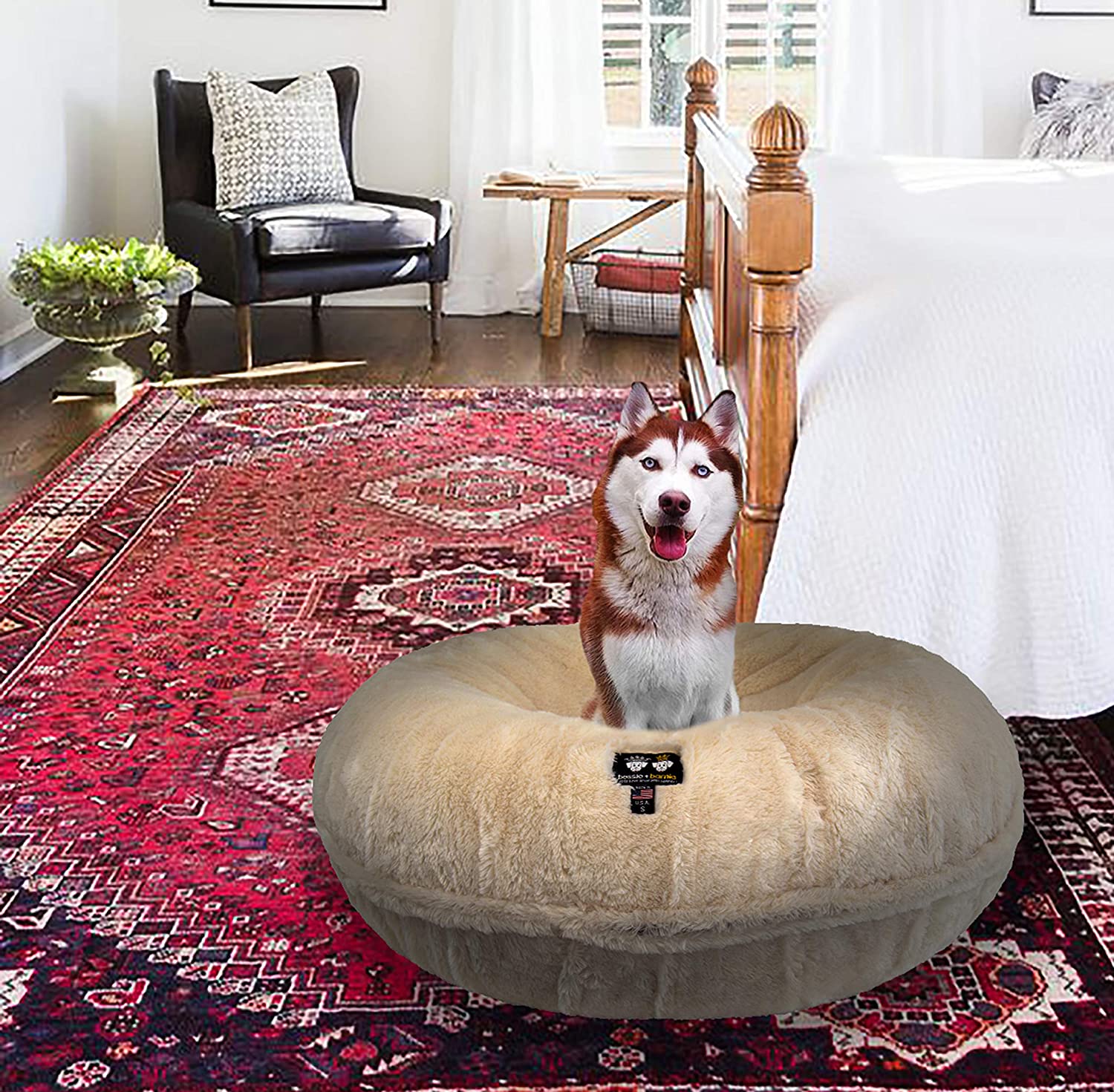 Bessie and Barnie Signature Mid Shag Natural Husky Luxury Extra Plush Faux Fur Bagel Pet/Dog Bed (Multiple Sizes)