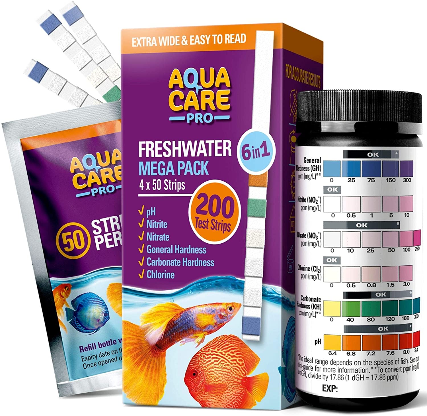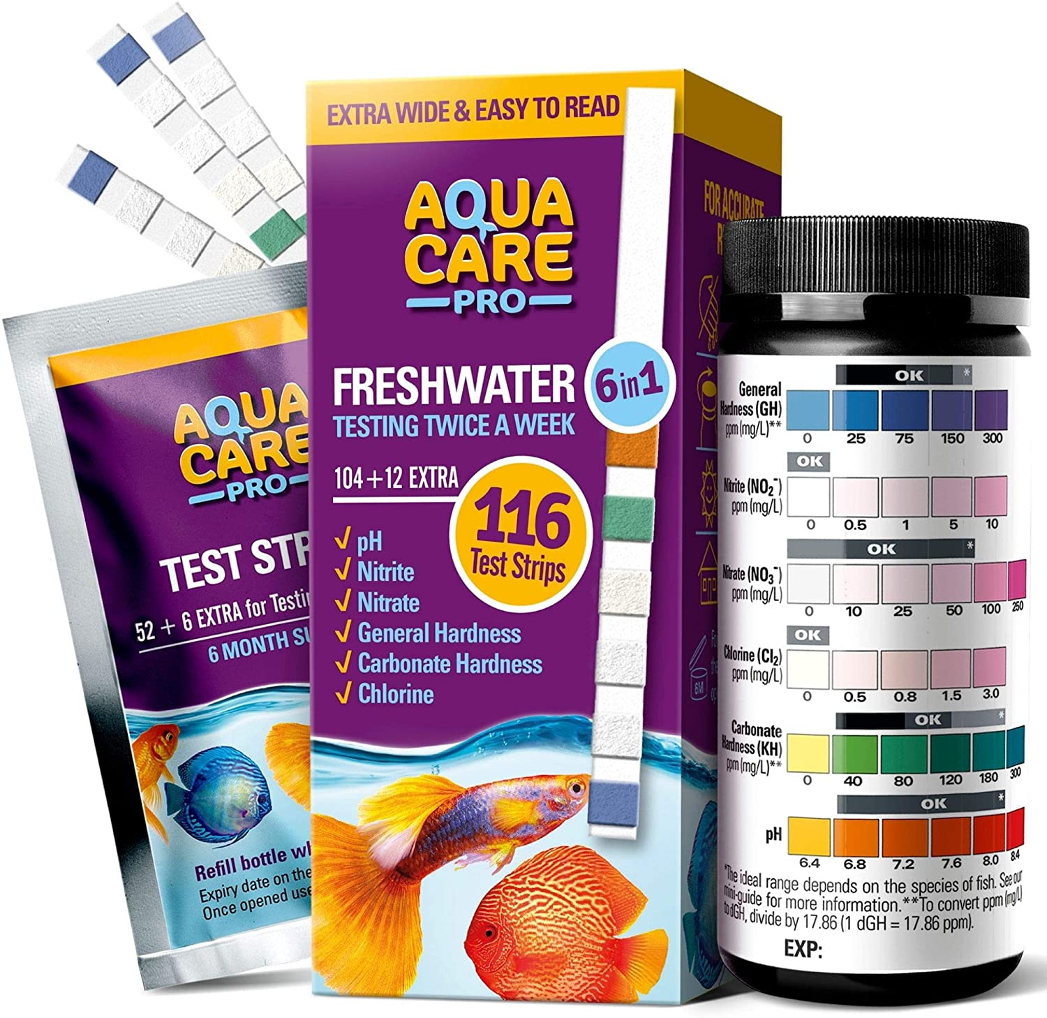 QUICK & EASY TO USE - Designed by experts, this 6 in 1 freshwater aquarium test kit is fast and easier to use than liquid test kits. Aqua Care Pro strips are wider and have non-bleeding colors, making them easier to hold, dip, and read.