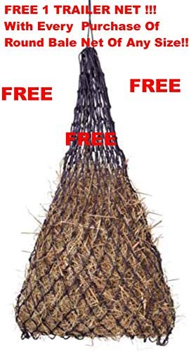 Its the THICKNESS (5-6mm ) that matters for Tech Round Bale Hay Net !!! One of the TOUGHEST Round Bale Net !! A Proud Canadian Brand & Top-Seller in Canadian Market . Features Of Our Netting:- Thickness = 5-6mm Poly Material ( HeavyDuty ) Type = Knottless ( Easy on gums/mouth of your horses ) Colour = Black ( No Issues of getting dirty ) Hole Size = 1.5” inches Net Size = 6x6 ( Works for 4x4, 4x5, 5x5, 6x6 Round Bales & also 3x3x8 Large Square Bales ) Contains WOODEN Loop For Enclosure at the Top ( No More CHEAP Plastic ) ** WARRANTY:- FREE 2 REPAIR KIT with every Purchase. Even the best Haynets in the Industry will get holes/tear. Our FREE REPAIR KIT is something that helps the customer to fix the holes quickly and avoid purchasing a new net. So more savings on $$$ . The Main Purpose of these Nets is to slow down the chewing capacity of your horses, goats etc. These Nets are designed to help in slowing down the eating capacity and NOT to be acting like an INDESTRUCTIBLE material. With time to time there might be small holes/openings which can be easily fixed by the REPAIR KIT. At the end of the day these are NETS and not HEAVY METALLIC OBJECTS, so minor holes would be a possibility. There is no way to stop the nets from getting chewed. ** PRECAUTION:- Animals with BOOTS, Blankets and Break-Away-Halters should not be feeded via Slowfeed Haynets. There are chances of their Metal parts getting stuck with the nets. If they are being fed upon by these nets then extra precaution should be taken by the owner/grazer and do keep a check on the horses/animal. ***** The Netting is CUT IN A RECTANGULAR SECTION and it GOES OVER the ROUND BALE. This RECTANGULAR SECTION is WIDE and LONGER ENOUGH to FIT the Round Bale of 6x6.