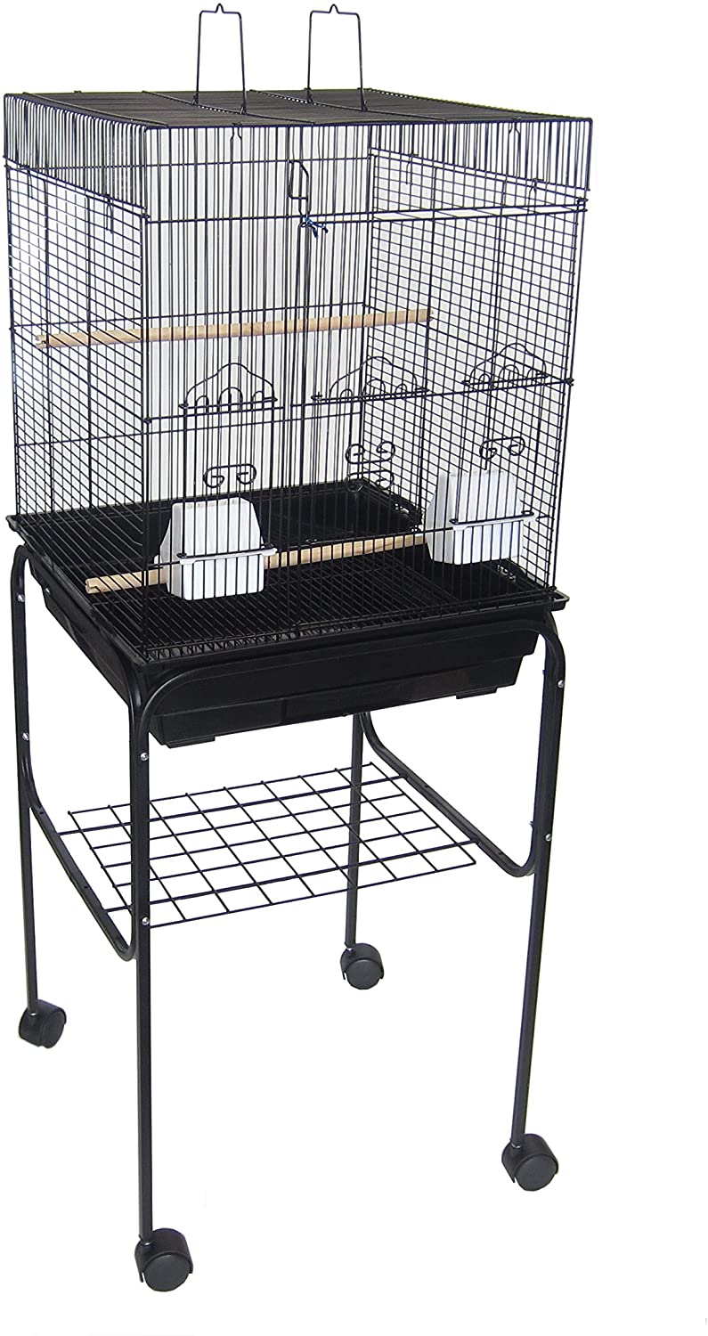 YML 5924 3/8" Bar Spacing Flat Top Bird Cage with Stand, 18" x 18"/Small, Black