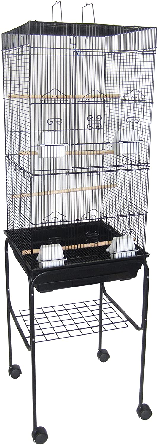 YML 6924 3/8" Bar Spacing Tall Flat Top Bird Cage with Stand, 18" x 18"/Small, Black