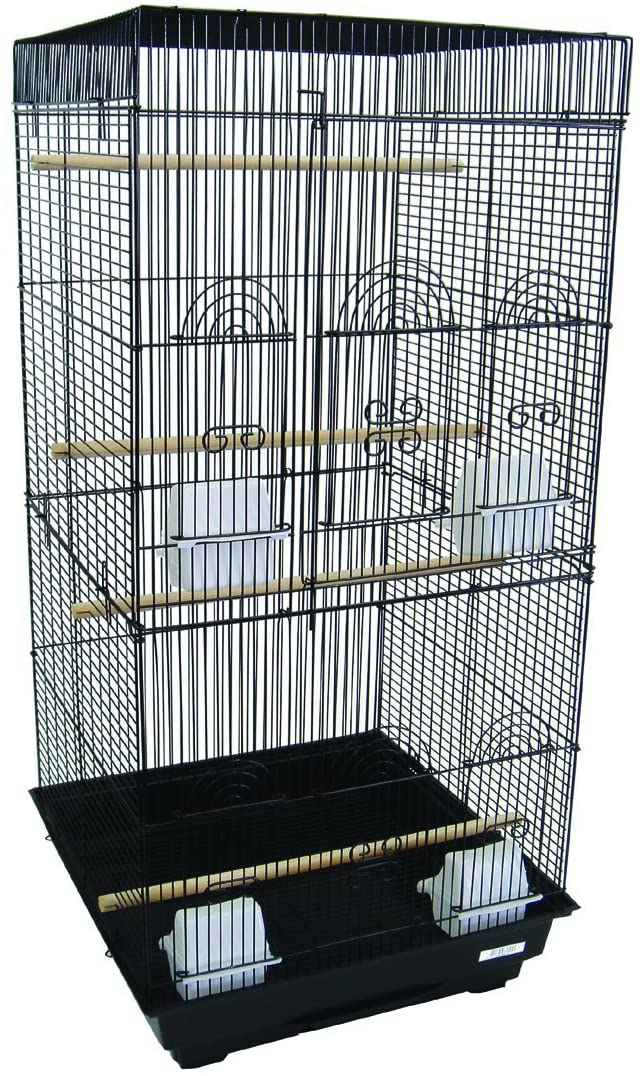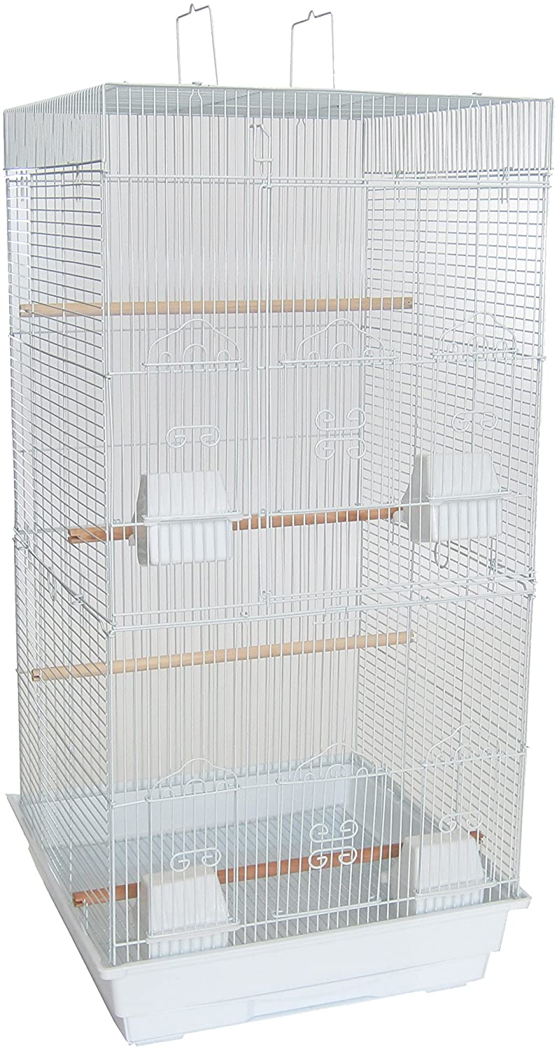 YML A6924 3/8" Bar Spacing Tall Flat Top Small Bird Cage, White, 18" x 18"